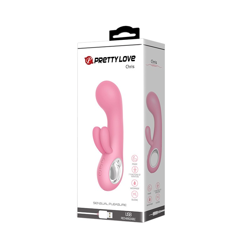 Chris posee un diseño elegante que se adapta perfectamente al contorno del cuerpo; su punta curvada garantiza una estimulación precisa para el punto G, Chris tiene 3 potentes motores, 1 en su estimulador interno, y otros 2 ubicados en cada una de sus «orejitas» para estimulación del clítoris. Incluye 7 ritmos de vibración, además de 5 niveles te potencia que puedes controlar de manera independiente para combinar y encontrar la vibración precisa para ti. Chris es recargable via USB y está hecho en silicona premium super suave al tacto y completamente seguro para tu cuerpo.