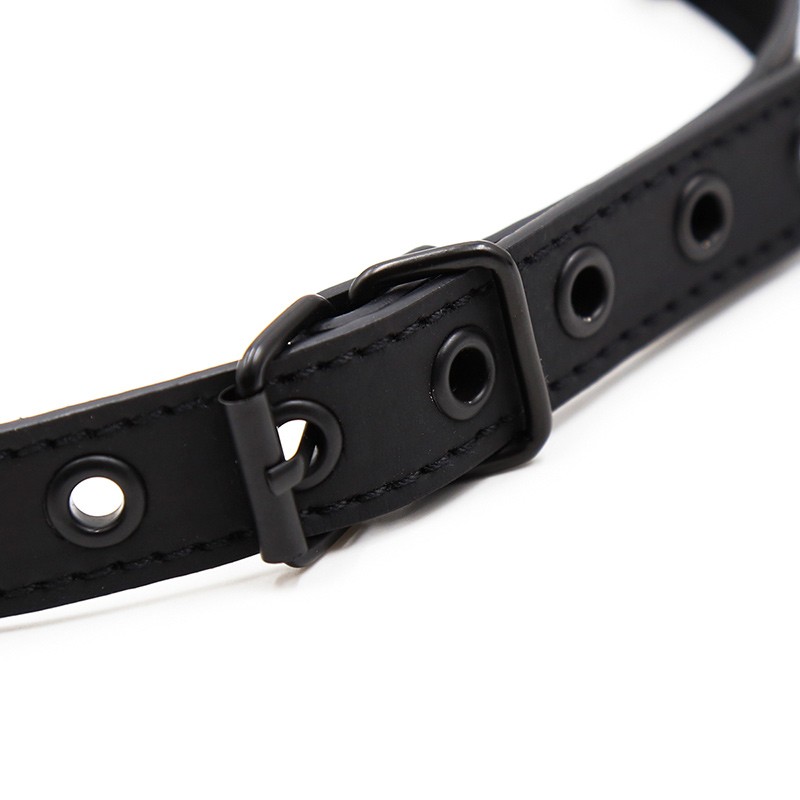 Mordaza perteneciente a la colección Dark Room. Su diseño sofisticado, con detalles decorativos completamente en color negro mate, será un complemento perfecto para tus sesiones de BDSM. Correa ajustable de cuero sintético, mordaza de plástico con orificios y cierre de hebillas, que te permitirán jugar con tranquilidad.